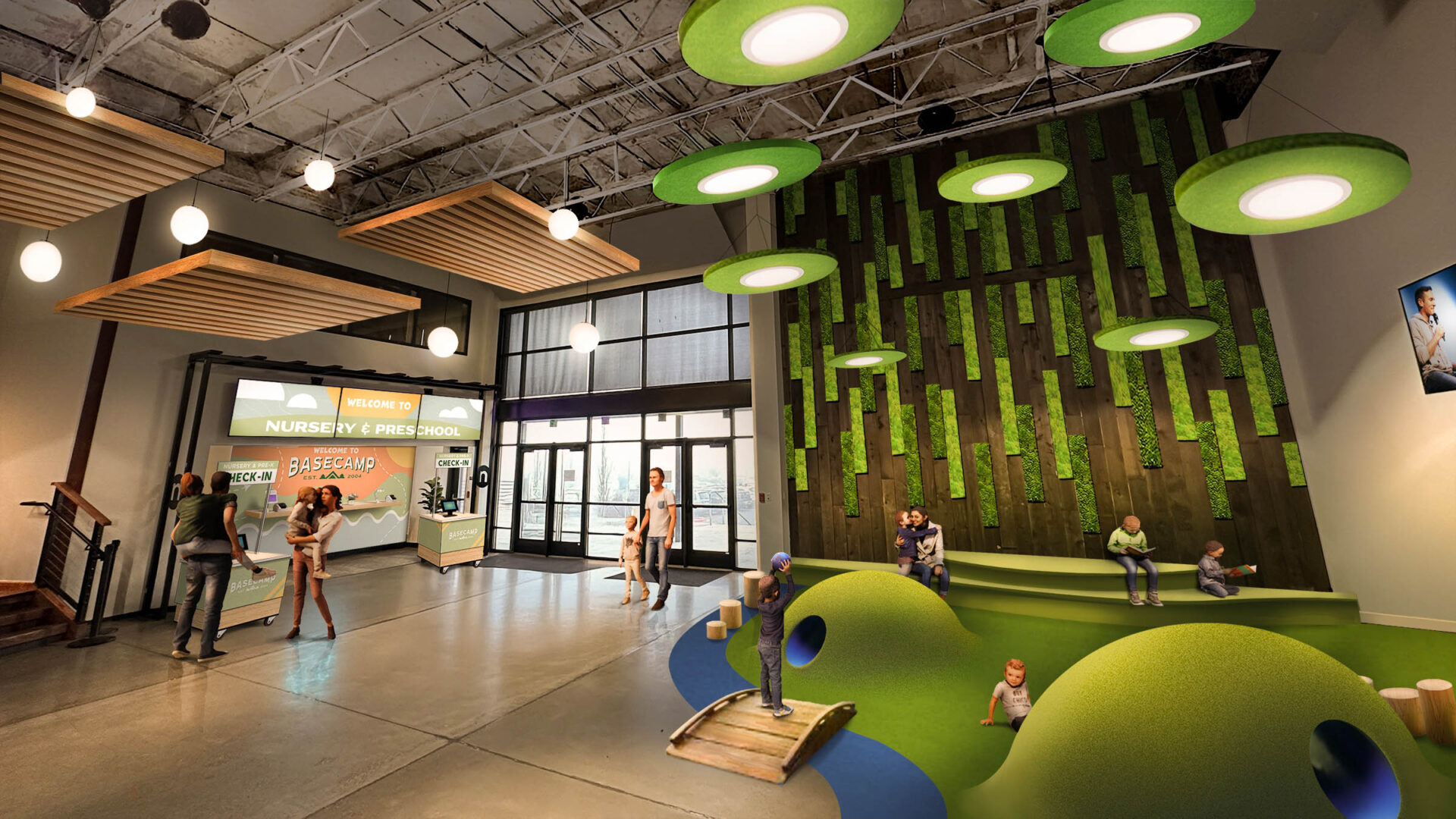 Newlife, a vibrant people-focused church in Silverdale, Washington, approached our team with a clear and heartfelt vision: to refresh their existing spaces, especially their kids’ areas, in a way that would boldly communicate their love and dedication to families. They also sought to build synergy with the neighboring YMCA, which already served as a key gathering place for the local community. With donations already coming in from their congregation, Newlife wanted a strategic, phased approach that would maximize immediate impact while thoughtfully planning for future expansion.
