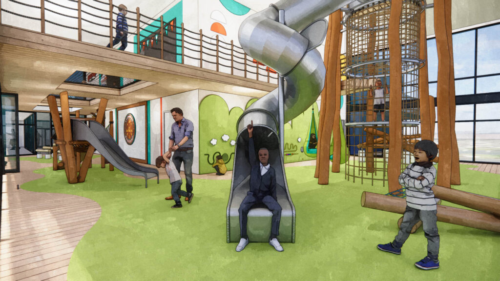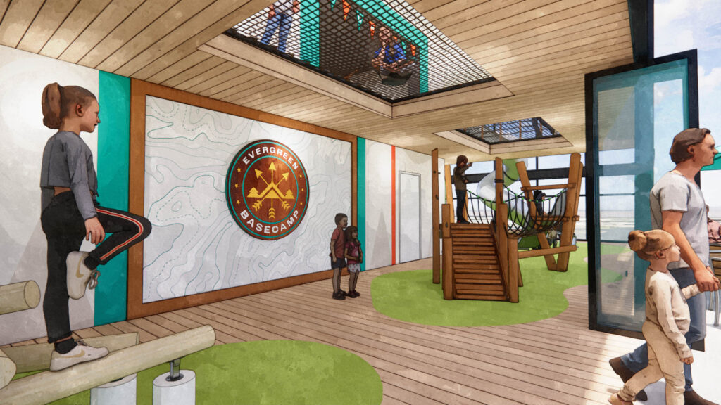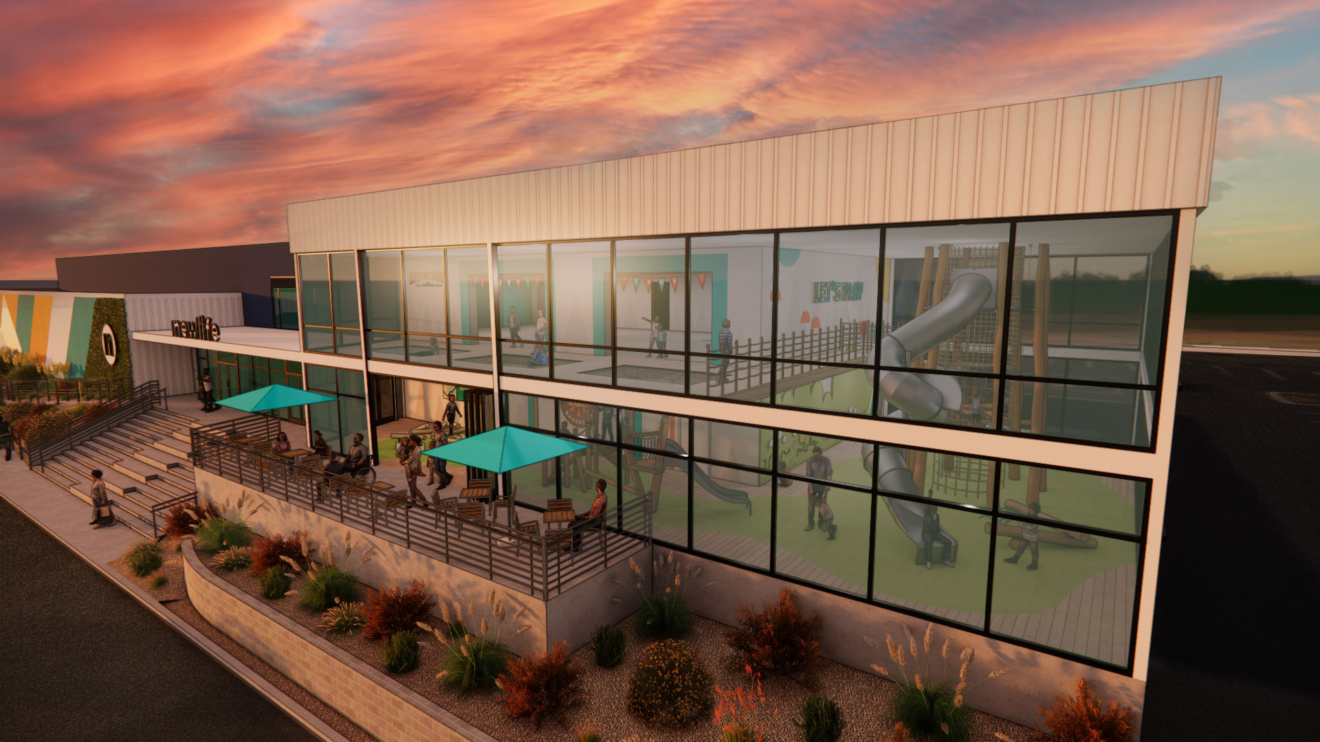 PlainJoe collaborated with Newlife to imagine a multi-phase design plan that celebrates kids and families while offering practical, scalable improvements. We focused first on reimagining their children’s environments as a welcoming, adventure-filled space. The design includes a two-story adventure zone with climbing towers, ropes, slides, and inclusive play areas tailored for kids of all abilities, including those with physical disabilities or neurodivergence. The sanctuary was also reimagined to focus on expanding seating capacity efficiently, allowing for growth with minimal construction. This balance of thoughtful design and phased execution empowers Newlife to serve their congregation well today while paving the way for their future.